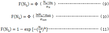 9.3在未知試驗齒輪的壽命分布函數時,一般採用正态分布,對數正态分布或二參數威布爾分布進行分布檢驗,確定分布類型,三種分布函數分别爲: