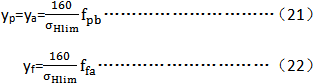 fpbeff、f­paeff——分别爲有效基圓齒距偏差和有效齒廓形狀偏差,μm;fpbeff和fpaeff爲跑合後的值,根據相應的跑合量yp和yf(μm)確定: