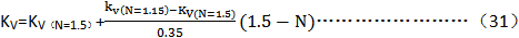 在這個區域,動載系數由N=1.15和N=1.5時的KV值(見4.5.3和4.5.4)線性插值確定 。