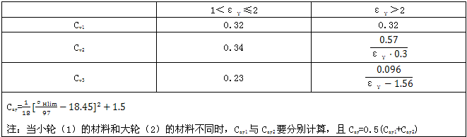 由跑合而産生的Cay值在齒輪不規定齒廓修形的情況下,代替公式中的Ca。Ca可由表3查取。單對齒剛度c′見附錄B。