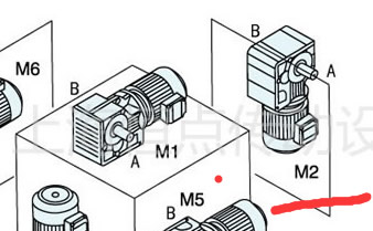 K67減速機 M2安裝方式 配普通電機輸入 右側單軸B輸出 标油鏡位置 實物圖