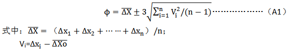 對每個标準元件,在被檢定儀器上進行n次重複測量(n≥)将每次測得值(或曲線)與标準值(或曲線)進行比較,其差值爲ΔX1,ΔX2,……ΔXn,儀器的示值誤差φ爲 :