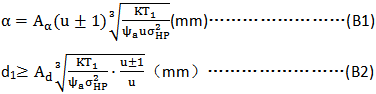 齒寬系數ψa見表B3ψda(u±1)/2。