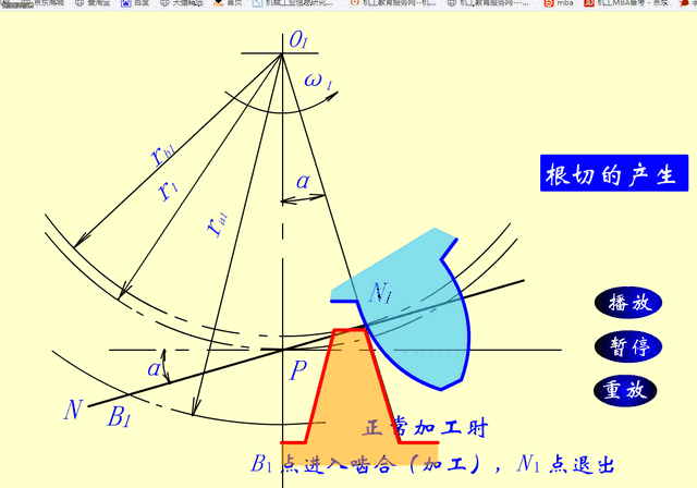 在加工過程中,刀具的齒(chǐ)頂會越過被加工齒(chǐ)輪的基圓與齧合線的極限切點(diǎn)。