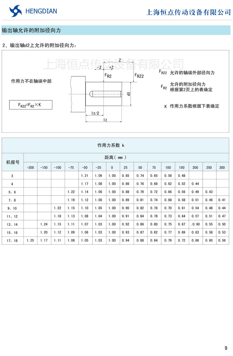 7 - 輸(shū)出軸允許的附加徑(jìng)向力 8 - H系列傳動能力表