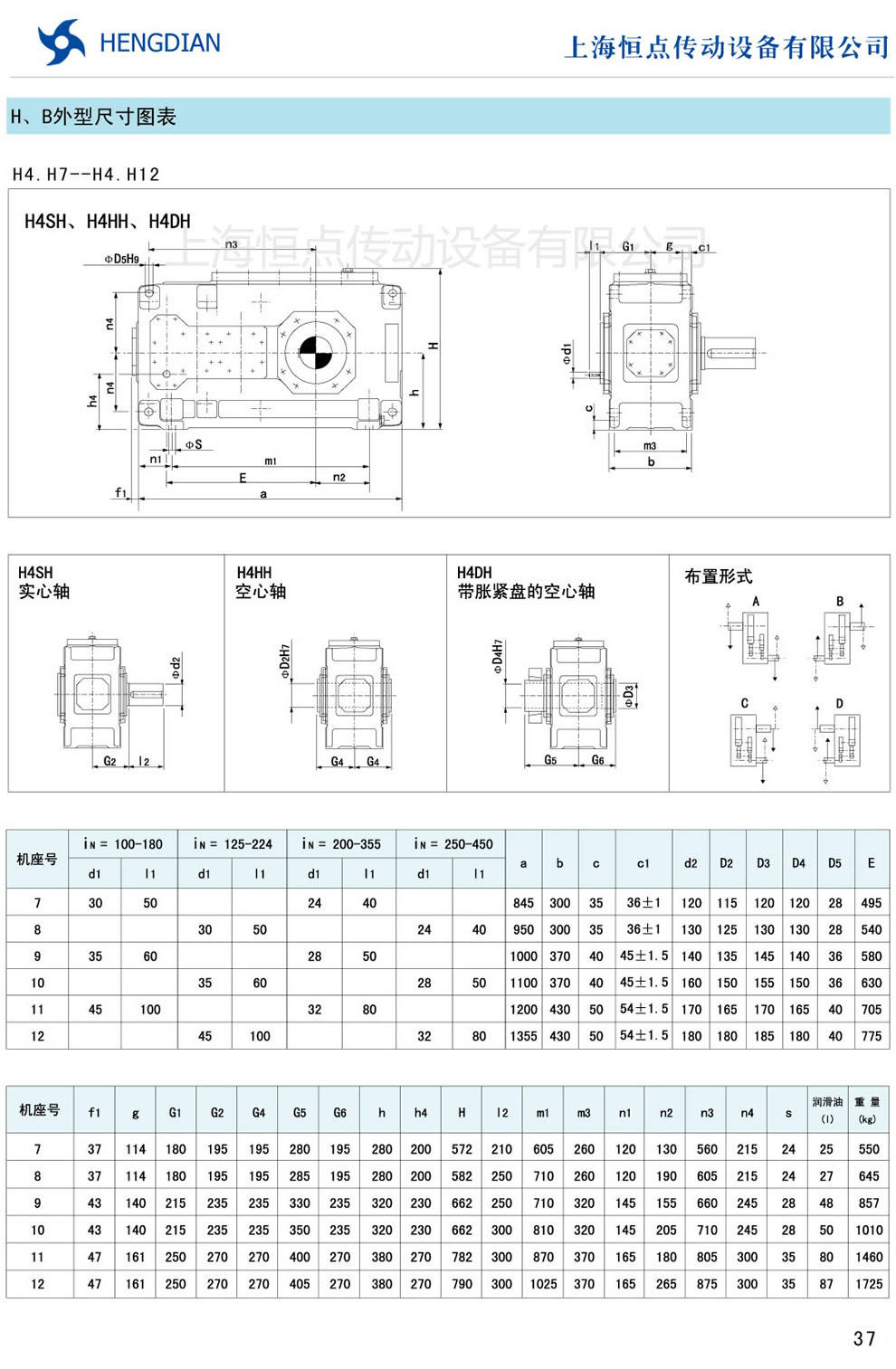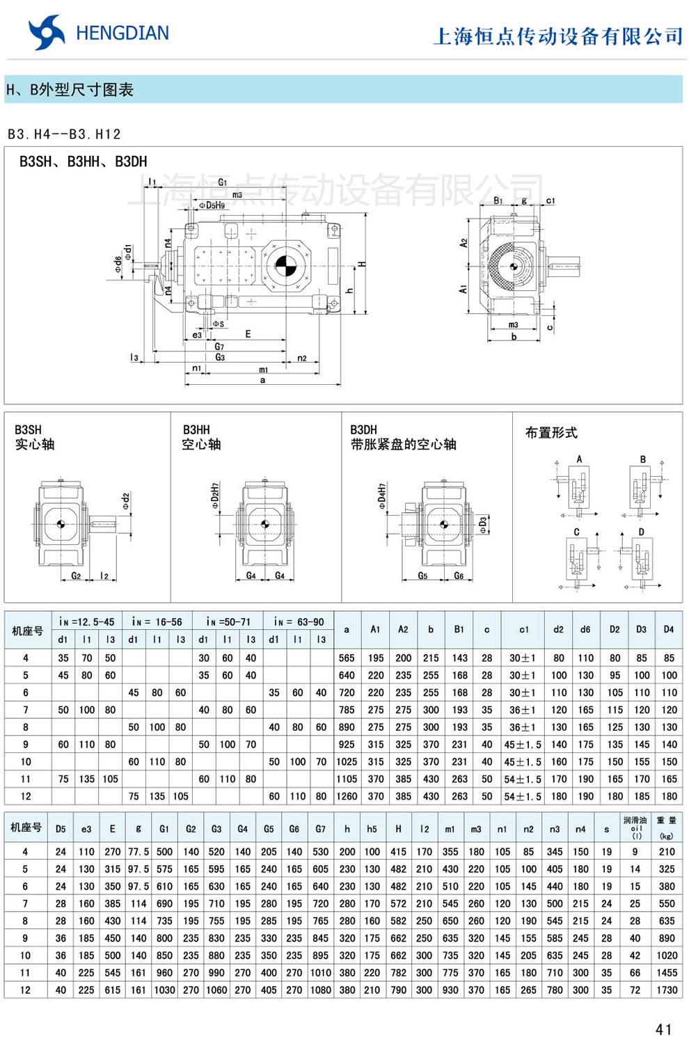 HB标準工業齒輪箱 詳細選型參數及尺寸參數: