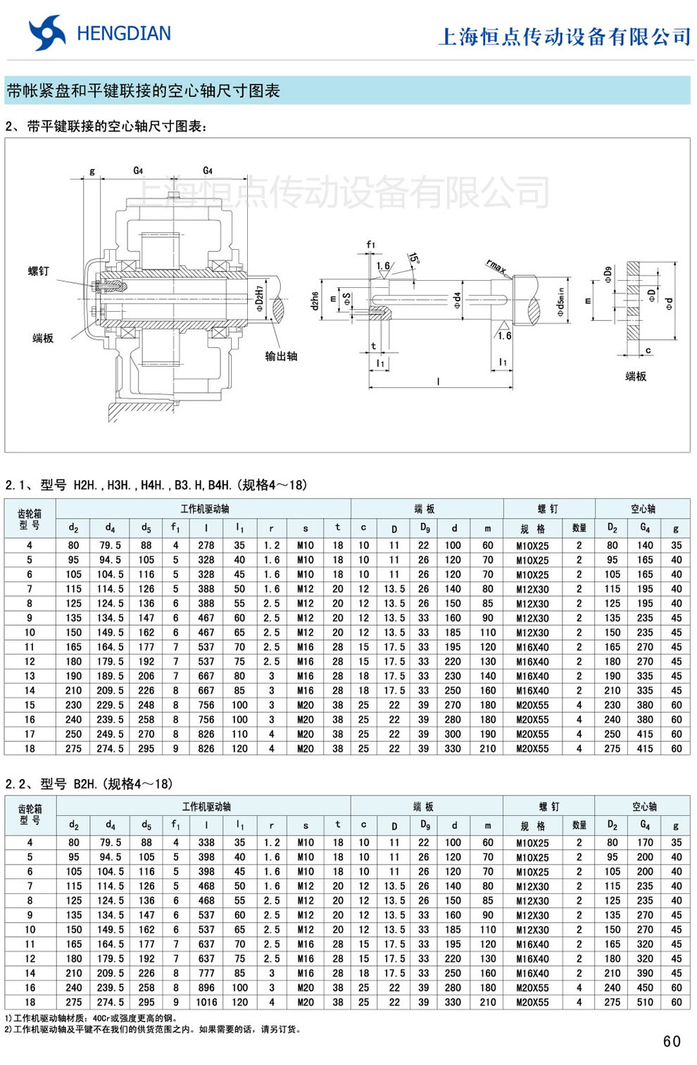 17 - 帶(dài)平鍵(jiàn)聯接的空心軸尺寸 18 - 帶法蘭軸尺寸