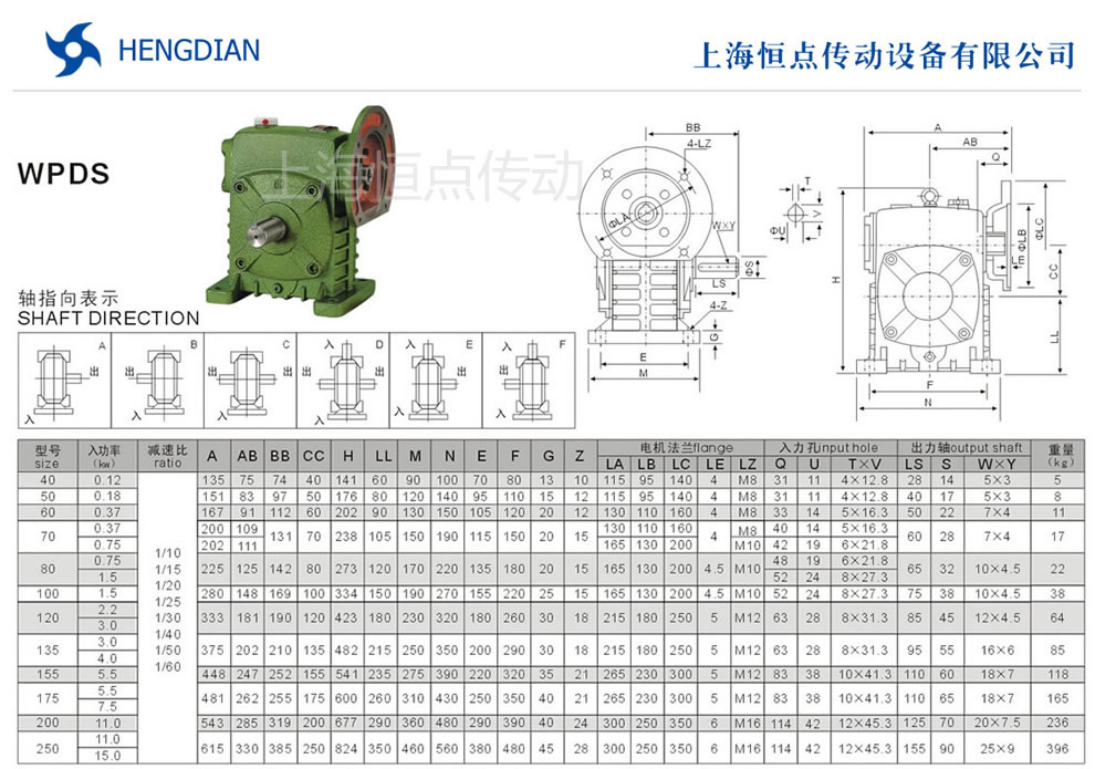WPDS減速機外形尺寸/選型指南 - WP鑄鐵蝸輪蝸杆減速機
