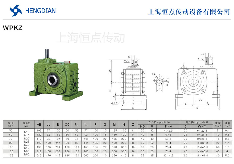 WPKZ系列蝸輪蝸杆減速機選型指南.WPKZ蝸輪蝸杆減速機的外形尺寸及安裝尺寸,WPKZ減速機法蘭輸入,軸輸出.WPKZ減速機軸指向表示方法.機座号從50到135,可選速比從10到60.